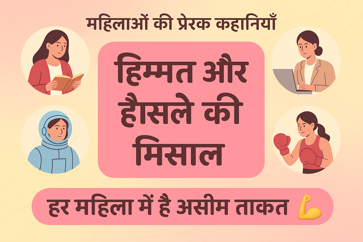 “हिम्मत और हौसले की मिसाल – महिलाओं की प्रेरक कहानियाँ” हमें यह सिखाती हैं कि महिला होने का मतलब कमजोरी नहीं, बल्कि ताकत और बदलाव की पहचान है। कल्पना चावला से लेकर किरण बेदी तक, हर कहानी यह बताती है कि सपनों को पूरा करने के लिए लिंग नहीं, सिर्फ जुनून मायने रखता है।