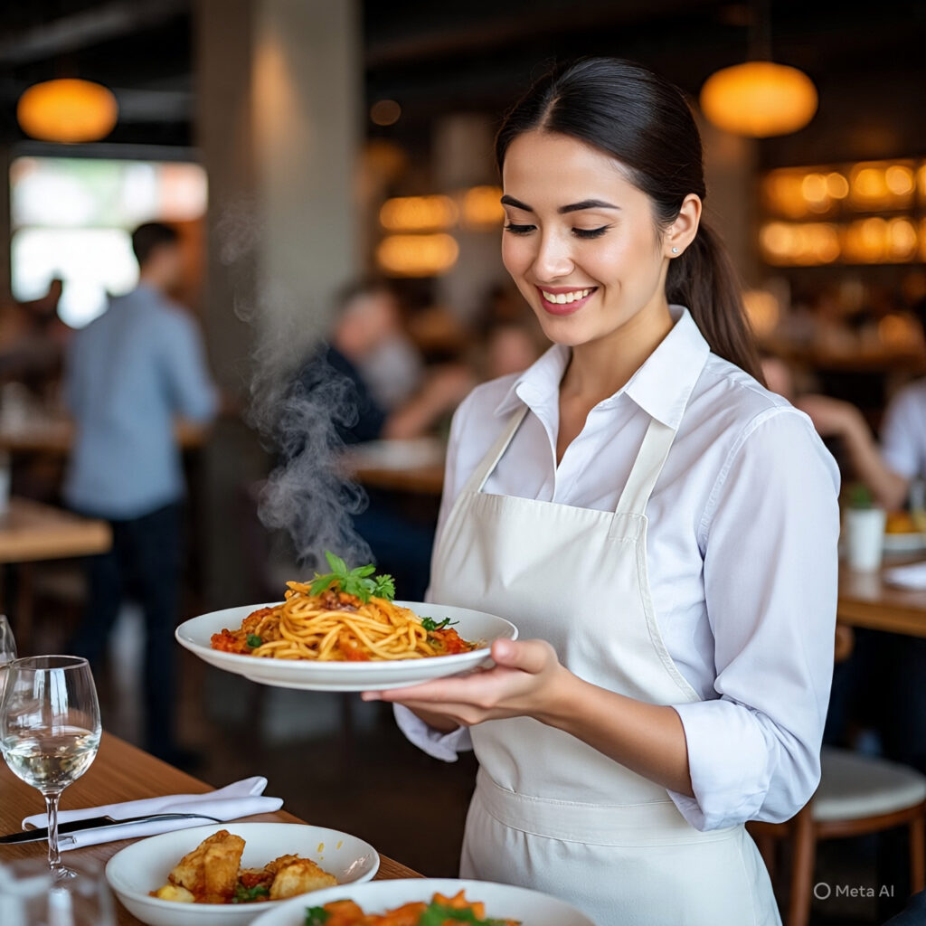 रेस्टोरेंट्स में खाना सर्व कर रहे हैं।